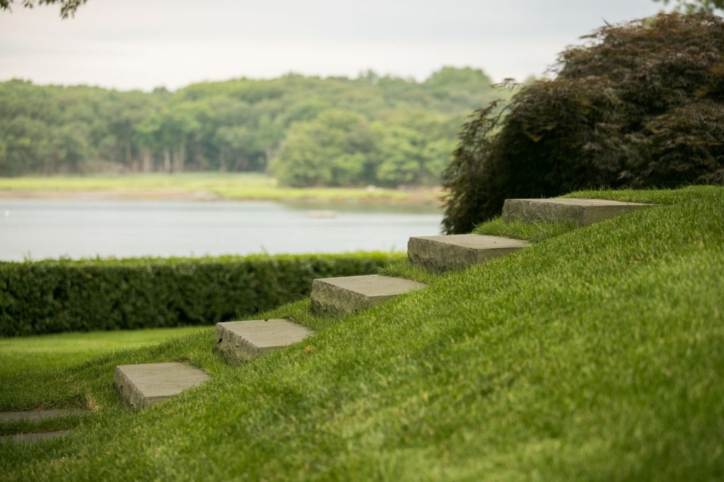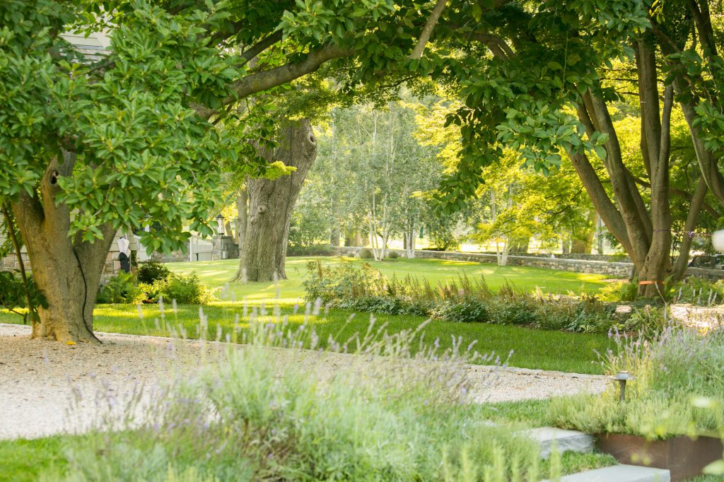 The owners desired a contemporary, lush landscape with architectural strength and year-round interest to complete the experience of living on the water. Creating a beautiful and practical courtyard to join the different site structures and landscapes was accomplished by preserving, protecting and including the large magnolia trees within the new gravel entry courtyard.